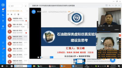 (通讯员:付航)4月17日上午,我校太阳成城集团tyc234cc院长、油气勘探地球物理测井国家级虚拟仿真实验项目负责人张云峰教授应教育部教育装备研究与发展中心邀请出席2020年虚拟仿真实验教学项目建设在线研讨会并通过钉钉在线直播平台作专题报告。