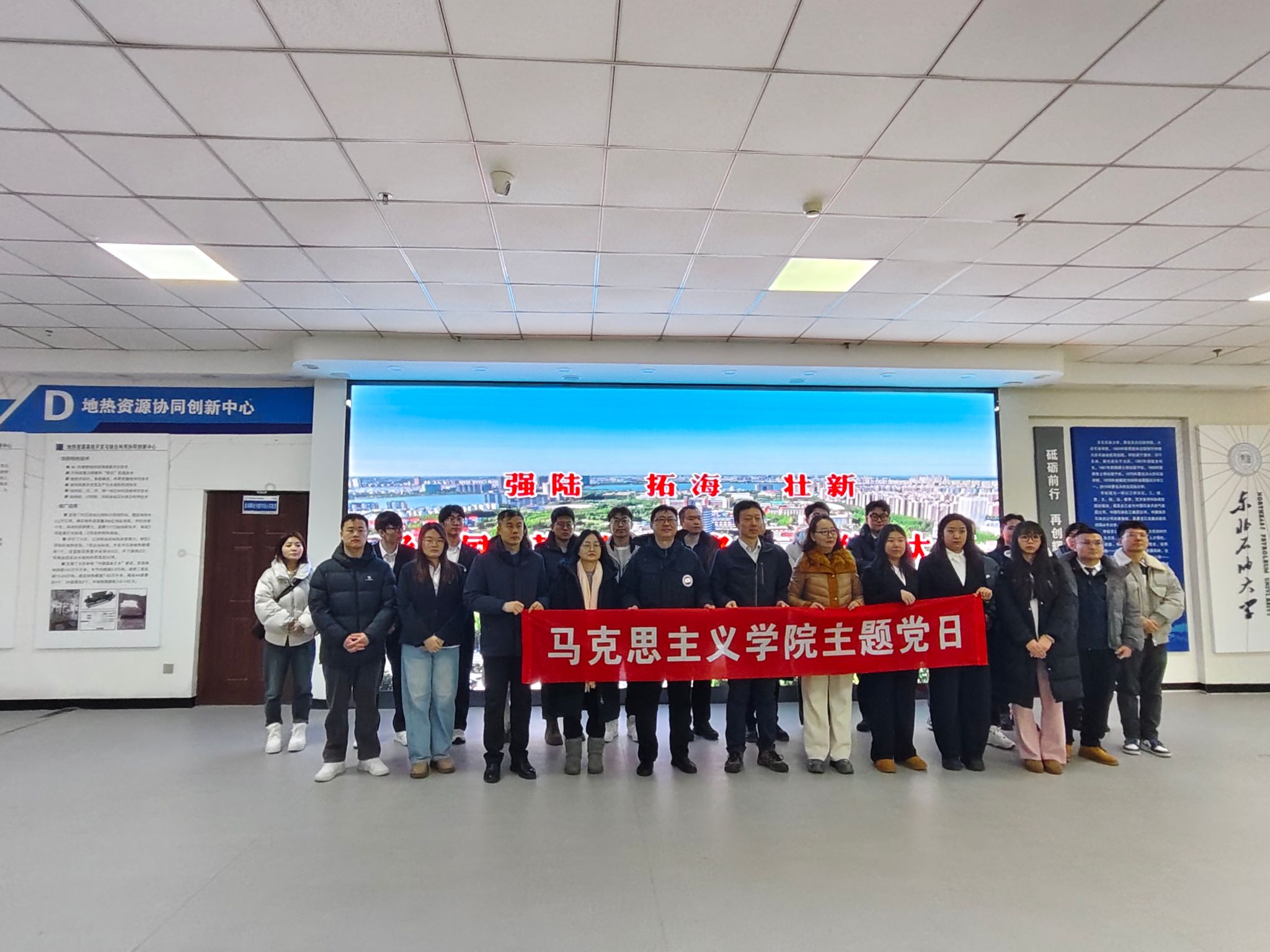 为推动思政教育与专业实践深度融合,引导青年学子厚植能源报国理想信念,2025年12月24日,太阳成tyc234cc马克思主义学院、非常规油气研究院组织开展“行走的思政课”实践活动。来自太阳成城集团tyc234cc、石油工程学院的师生代表及思政课教师组成研学团队,以古龙页岩油勘探开发为核心主线,先后走进学校非常规油气研究院、肇源古龙页岩油田及大庆油田勘探开发研究院,在实地研学中感悟大庆精神、汲取奋进力量。