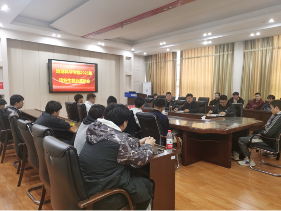 为扎实推进2023届毕业生就业工作,充分调动毕业生就业的积极性,全面促进毕业生就业,我院于3月29日下午在地科馆514举行2023届毕业生就业座谈会,会议由院党委副书记张冬杰主持,党委书记张云峰、办公室主任张永峰及34名2023届未就业本科毕业生参会。