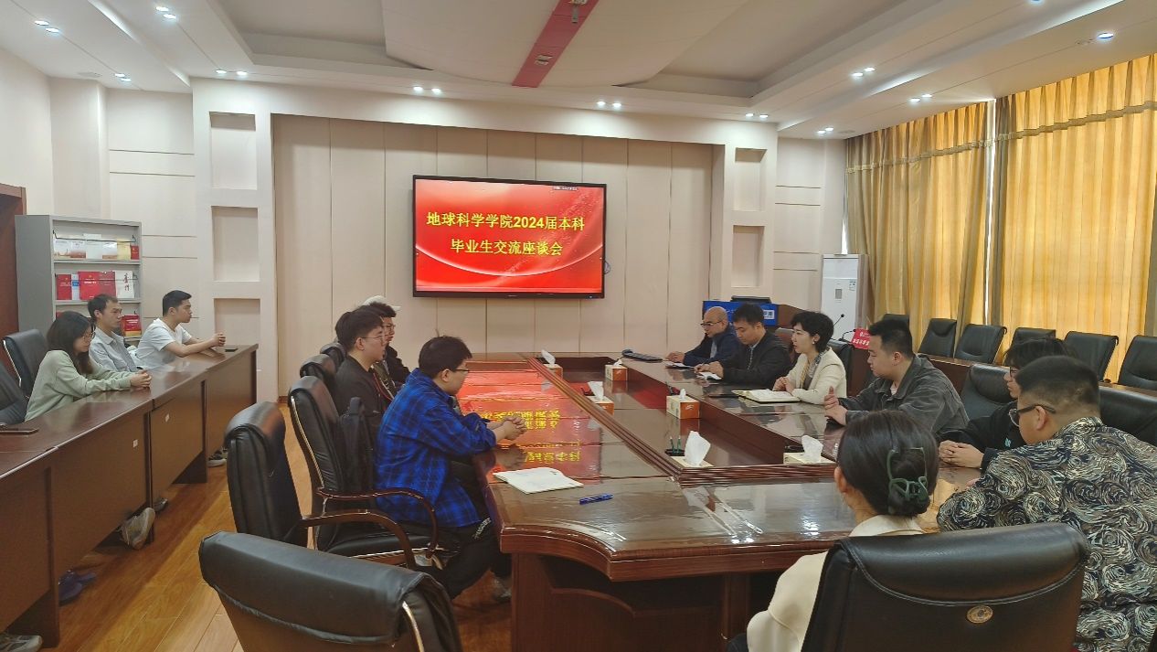 5月16日上午,太阳成城集团tyc234cc2024届毕业生座谈会在地科馆514会议室举行。学院党委书记韦丹宁、资源勘查工程系主任史集建、勘查技术与工程系主任王宁、副主任曾科以及20位不同专业的毕业生代表参加了本次座谈会。