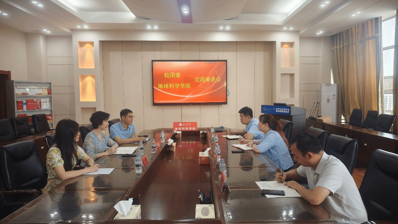 2024年7月12日上午,校团委书记施洋、副书记金海燕、副书记王锐一行到我院交流座谈,会议在地科馆514会议室举行。学院党委书记韦丹宁、副院长王海学、辅导员陈曦参加座谈。