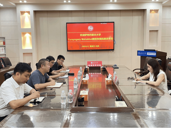 8月2日,哈萨克斯坦萨特巴耶夫大学Tursyngazy Mahabbat教授来我院交流,副院长朱焕来、王海学和资源勘查工程系主任史集建、地球信息科学与技术系主任吴海光参加了交流活动,会议由朱焕来主持。