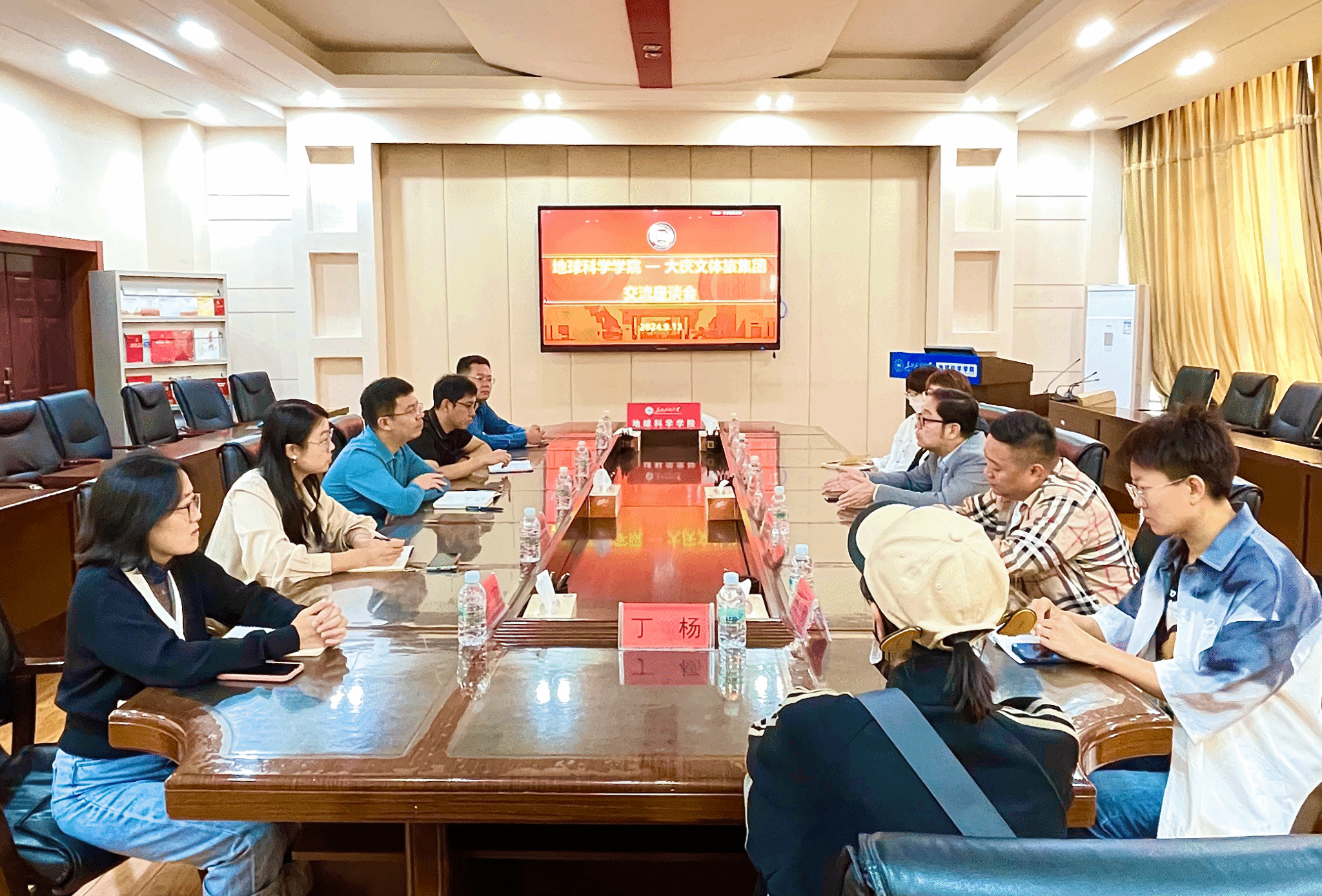 9月13日,大庆文化体育旅游集团有限责任公司副总经理邢世凯一行6人来我院就校企产学研合作、地学研学基地建设等方面进行座谈交流。院长孙雨、副院长王海学及相关教师参加了座谈,座谈会由孙雨主持。