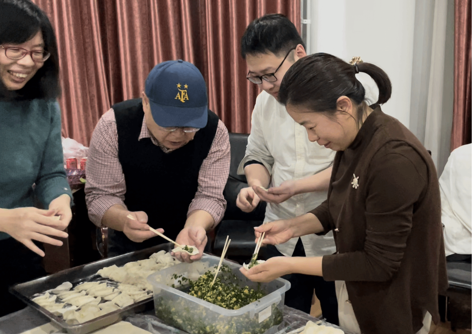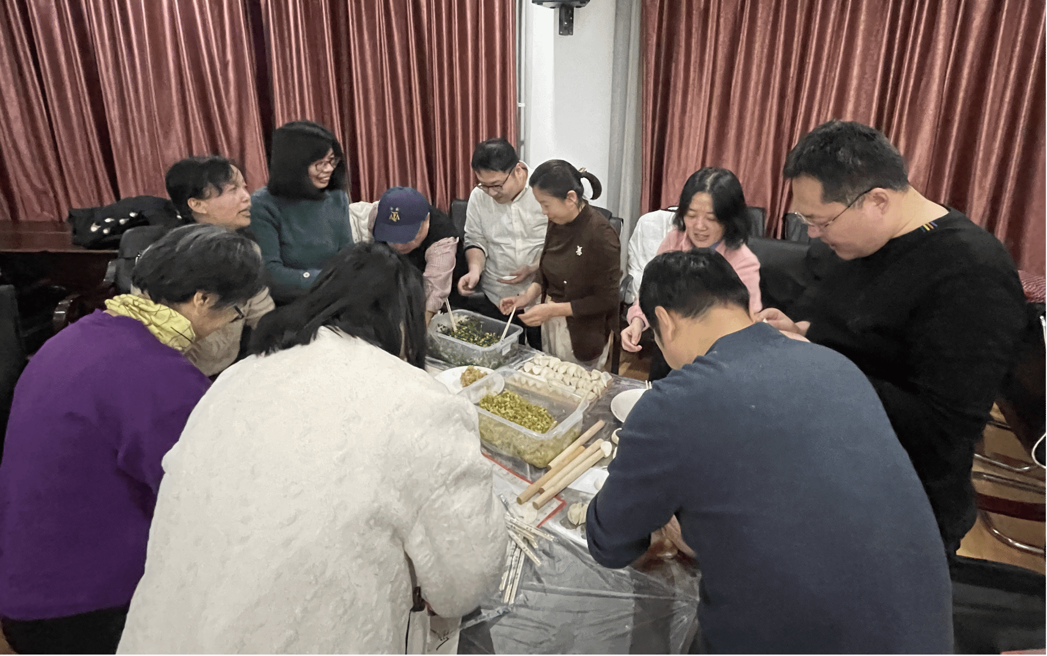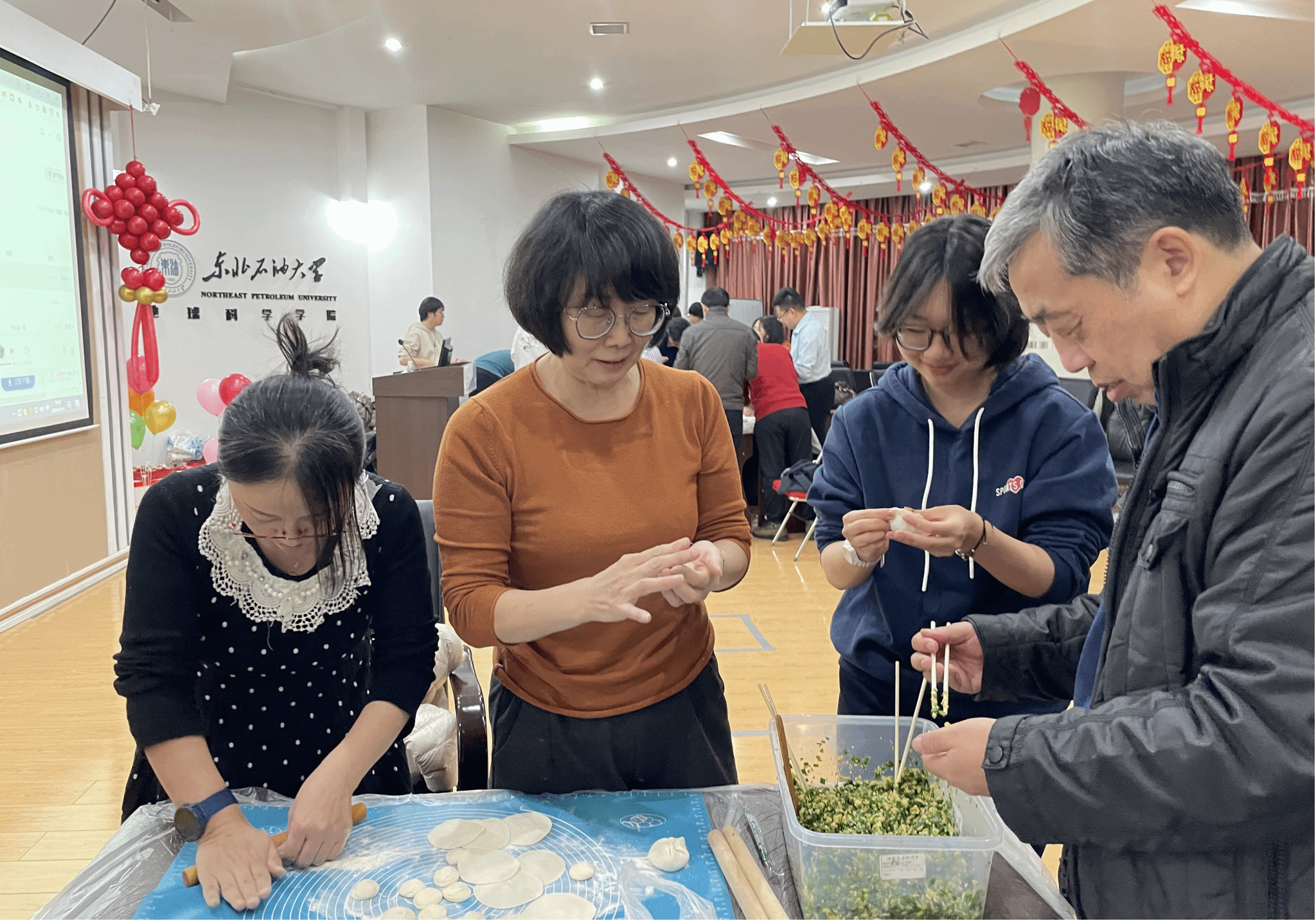 饺子在中国传统中有着团圆、平安、幸福等美好的寓意。在包饺子环节,老师们围坐在一起团剂子、擀皮儿、包饺子,相互交流着包饺子的技巧,分享过去一年的工作生活中收获与趣事,也展望新一年的期待与蓝图,每一颗饺子都饱含着大家对新一年的美好期望。最后,热气腾腾的饺子出锅,大家品尝着自己的劳动成果,感受着浓浓的节日氛围与集体的温暖。