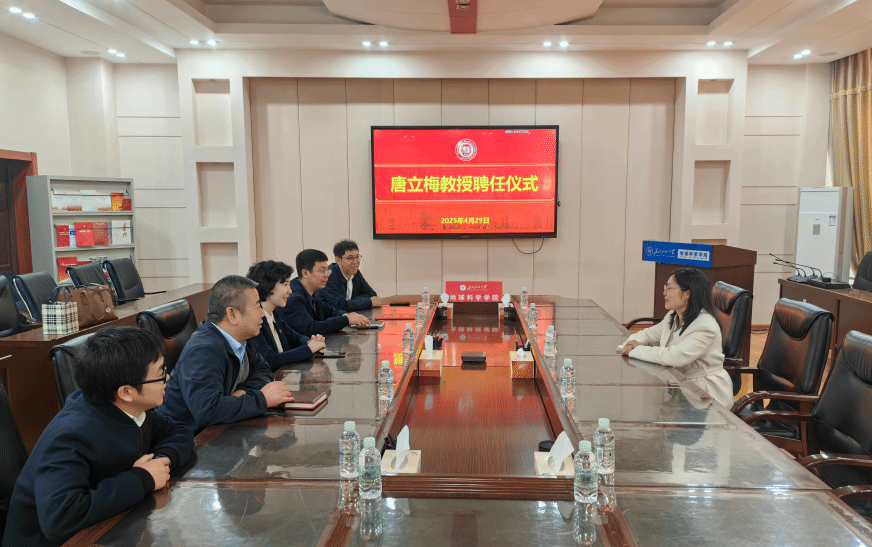 孙雨为唐立梅颁发聘书。他表示,唐立梅教授的加入,能够为师生们带来全新的视野和启发,为我校相关学科的发展注入新的活力。
