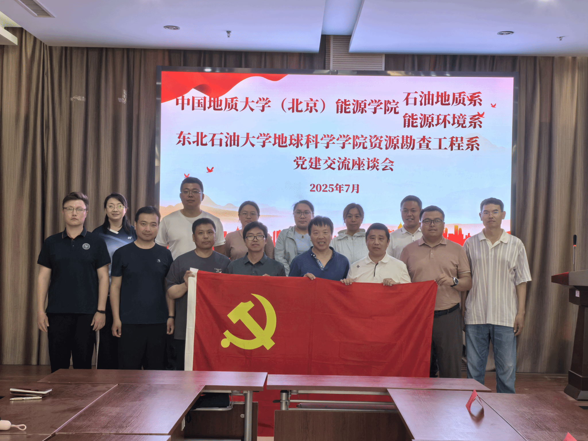7月10日,由太阳成城集团tyc234cc资源勘查工程系党支部书记蒋飞与中国地质大学(北京)石油地质系第二党支部书记李涤共同牵头,两校在秦皇岛柳江盆地基地召开党建与业务融合交流座谈会,达成多项合作成果:一是在李涤教授《中国地质大学(北京)能源学院院情介绍》报告基础上,双方积极探索人才培养合作路径,为学子升学发展搭建桥梁;二是围绕吴俊教授《北戴河地质认识实习交流会》报告,深入交流两校长期教学经验,探讨科研成果融入教学的具体途径与案例,达成本科生地质认知实习校际合作意向;三是结合蒋飞《第四批全国样板支部-资源勘查工程系党支部建设经验分享》报告,共同探讨基层党建创新做法与典型经验,并就人才培养、实习实践、教师队伍建设、学科发展等领域展开深度研讨,凝聚合作共识。