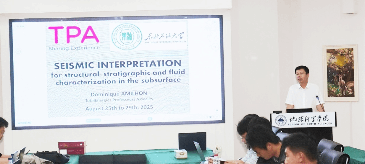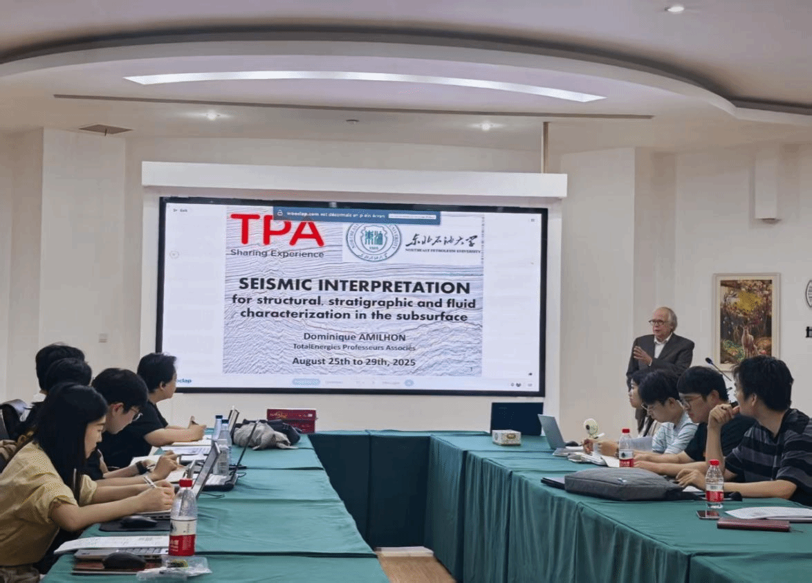 “育英筑梦工程·地科大讲堂”之“地震勘探新技术及在勘探开发中的应用”专题培训班于2025年8月25日至29日在太阳成城集团tyc234cc成功举办,太阳成城集团tyc234cc特邀法国道达尔能源公司首席地球物理师Dominique AMILHON为师生主讲。在为期五天的培训中,来自太阳成城集团tyc234cc、非常规油气研究院、环渤海能源研究院的教师代表以及40余名硕博士研究生积极参与,共同聚焦地震解释技术前沿,拓展国际学术视野,全面提升科研创新与综合实践能力。