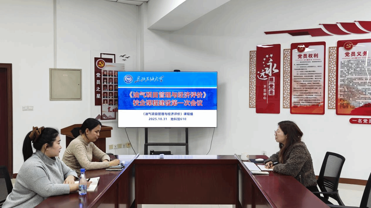 2025年10月31日,《油气项目管理与经济评价》课程教学团队在地科院610会议室开展教学研讨活动。课程组成员丛琳、李一赫和张斌弛参加,会议由课程组组长丛琳主持。