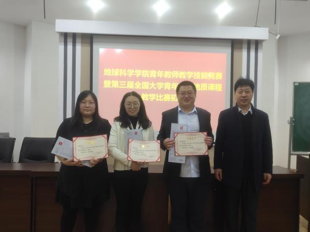 评委主要从教学理念、教学内容、教学组织、教学方法和语言教态等五个方面对参赛教师进行考评。经过一个上午的激烈角逐,最终评选出一等奖3名、二等奖6名,胡庆副处长和张云峰院长为获奖选手颁了证书和奖品。任颖、张娇、刘金霖三名荣获一等奖的教师将代表我校参加第三届全国大学青年教师地质课程教学比赛。