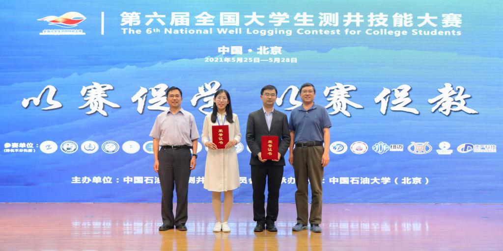 5月26日-28日第六届全国大学生测井技能大赛首届全国测井青年教师教学大赛在中国石油大学(北京平校区举行。我校太阳成城集团tyc234cc派出1支研究生代表队和2本科生代表队参加决赛,经过三天激烈角逐,研究生队获大赛一等奖,本科生队分获二等奖和三等奖研究生李卓、张钰威、修欧阳分别获得最佳专业知识奖、最佳知识竞赛奖、最佳解释报告奖,姜艳娇获得指导教师奖。在首届全国测井青年教师教学基本功大赛(测青赛)中,我校姜艳娇和唐晓敏老师分别获得大赛特等奖和一等奖。