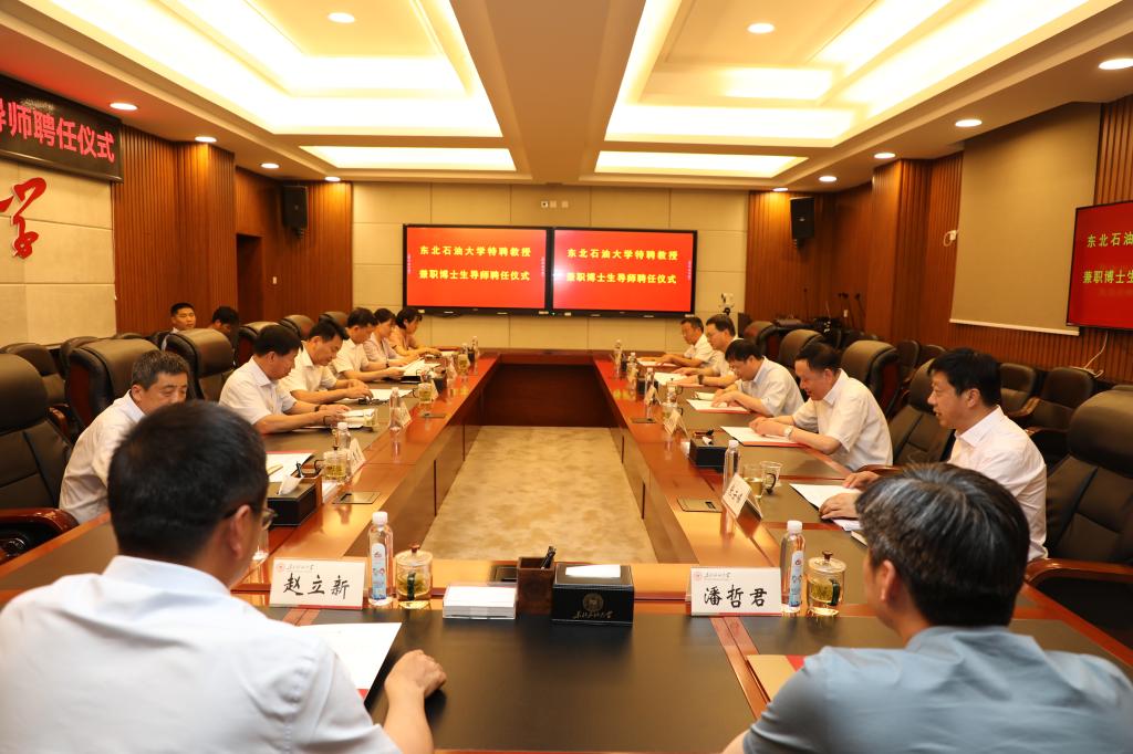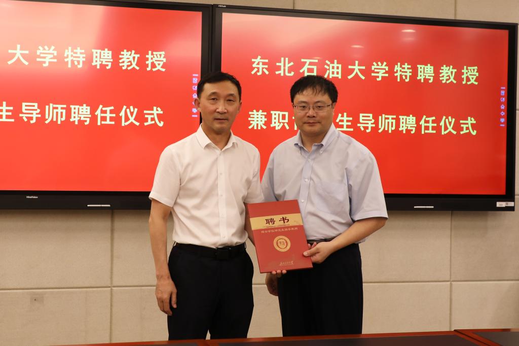 (文/图 吕鸿浩)7月16日,我校在机关5楼会议室举行聘任仪式,大庆油田党委常委、大庆油田有限责任公司(大庆石油管理局有限公司)副总经理兼总地质师何文渊受聘为我校特聘教授、兼职博士生导师。大庆油田有限责任公司首席技术专家、我校提高采收率研究院名誉院长程杰成,大庆油田有限责任公司技术发展部主任王刚,我校领导孙明学、蒋明虎、高洪峰、董宏丽及科研处、人事处、研究生部、太阳成城集团tyc234cc、石油工程学院、非常规油气研究院等单位相关负责人参加聘任仪式。副校长高洪峰主持聘任仪式。