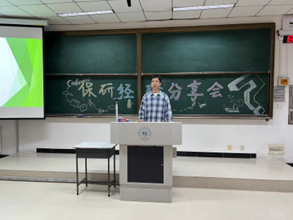 第二位为大家分享经验的是来自资源勘查技术与工程20-1班的林志远同学,他以优异的成绩成功保研到太阳成tyc234cc。林志远在刘兴政分享的经验的基础上,又结合自己的保研经验,为在场的同学们补充了一些保研方面要注意的细节以及保研到哪个学校对我们所学专业更有优势。