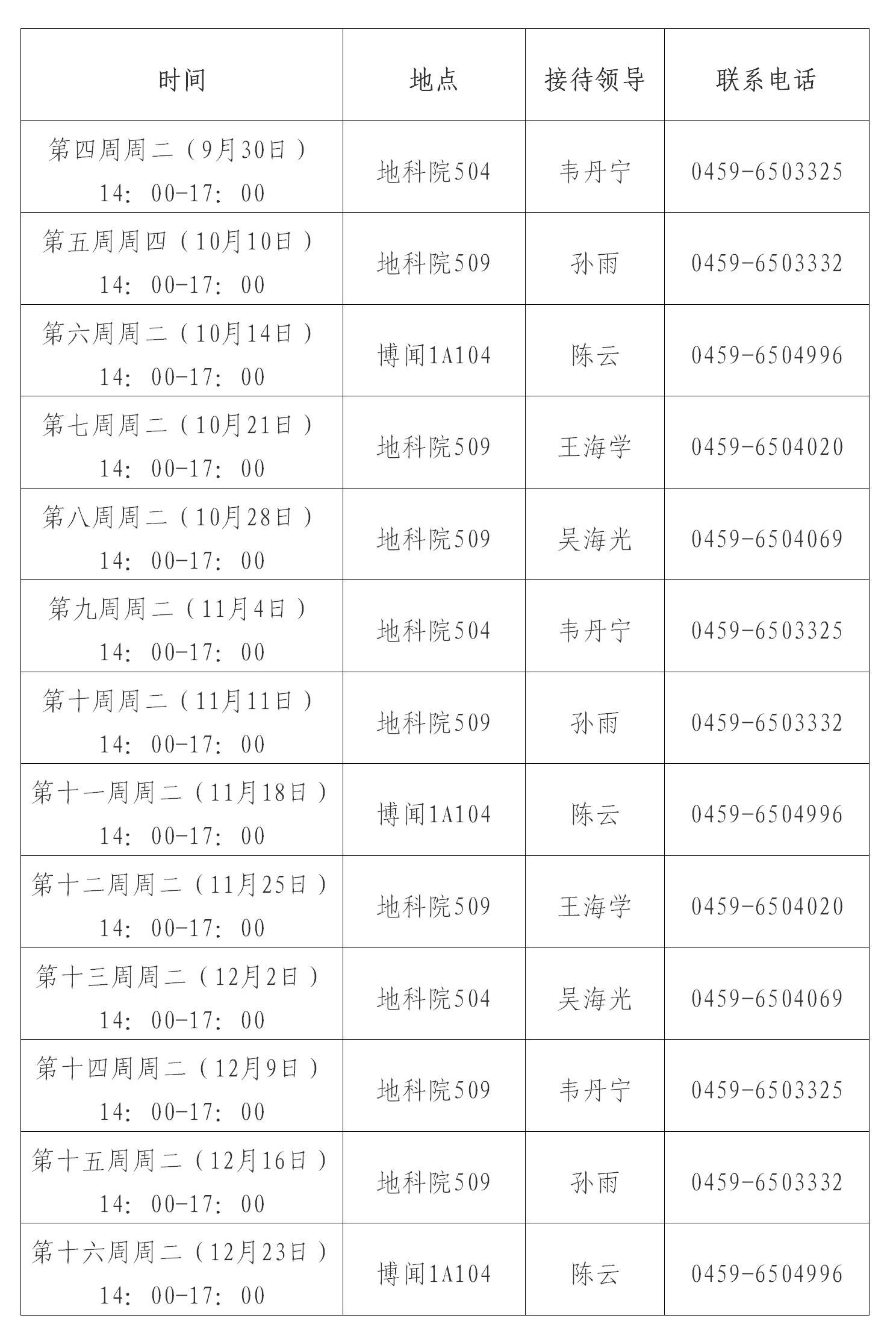 为了更好践行“以师生为中心”的理念,精准把握师生需求,切实解决教学科研及生活中的实际问题,特制定太阳成城集团tyc234cc院领导接待日安排计划。详见附表1。
