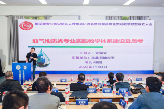 副院长朱焕来代表我院参加了地学类专业实践教学联盟章程讨论和联盟成立仪式。在会议中作了题为“油气地质类专业实践教学体系建设及思考”的专题报告,分享了我院在推进应用型本科人才培养过程中,在专业实践教学体系建设方面所做的工作和取得的成效。