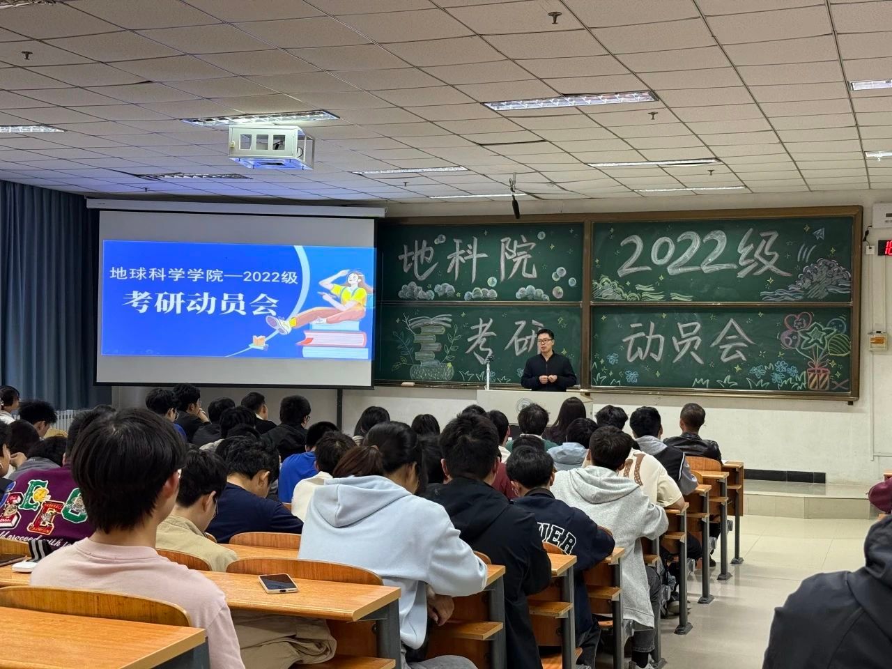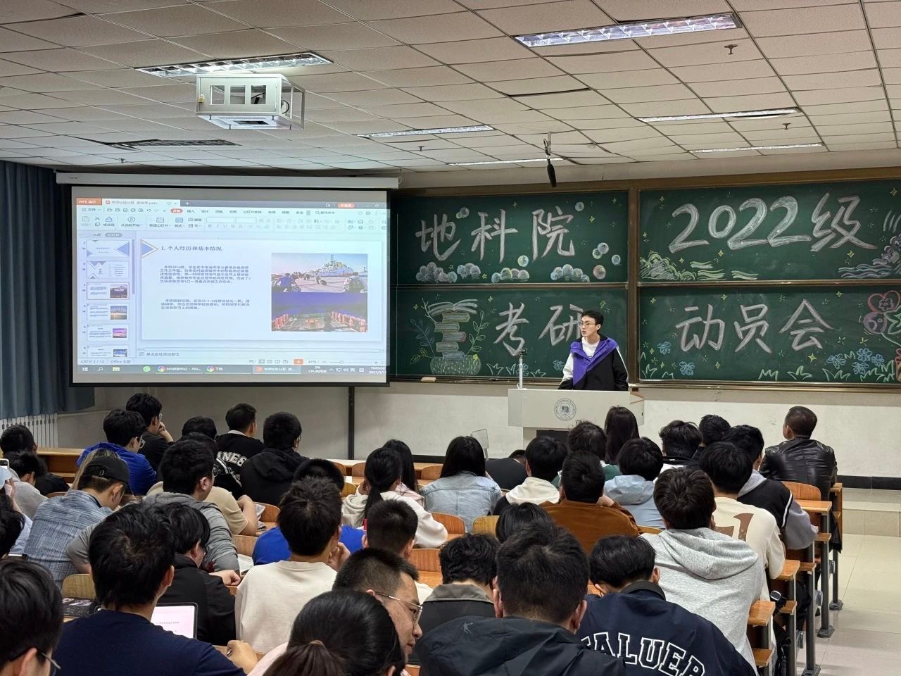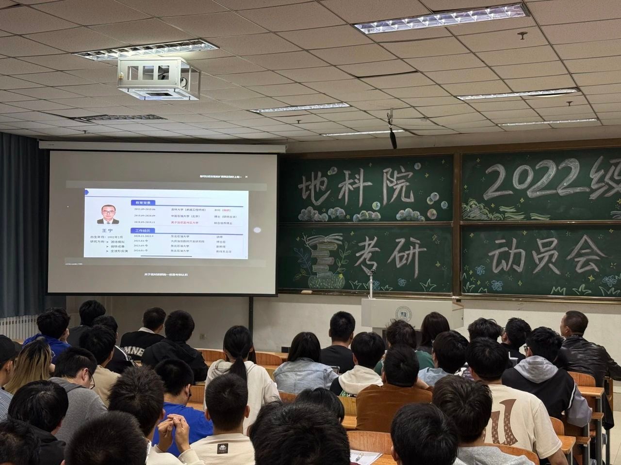 为激发学生考研热情,助力学子科学规划备考,5月15日晚,太阳成城集团tyc234cc于教学主楼C102举行“拼搏今朝,收获未来”2022级考研动员会。学院党委副书记王钢、资源勘查系主任蒋飞、勘查技术系主任王宁、2022级辅导员李海悦、优秀研究生代表、2021级优秀考研学生代表以及2022级本科生参会。