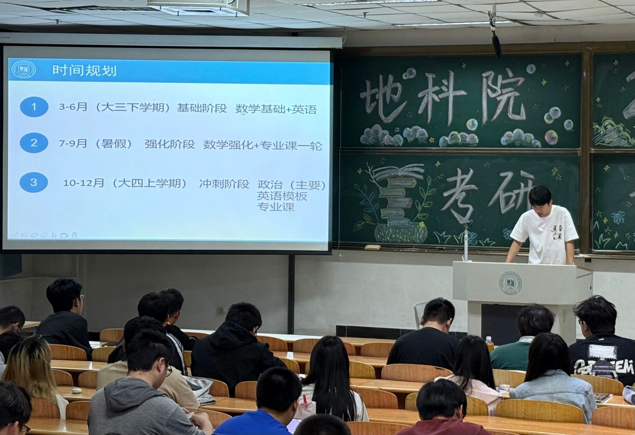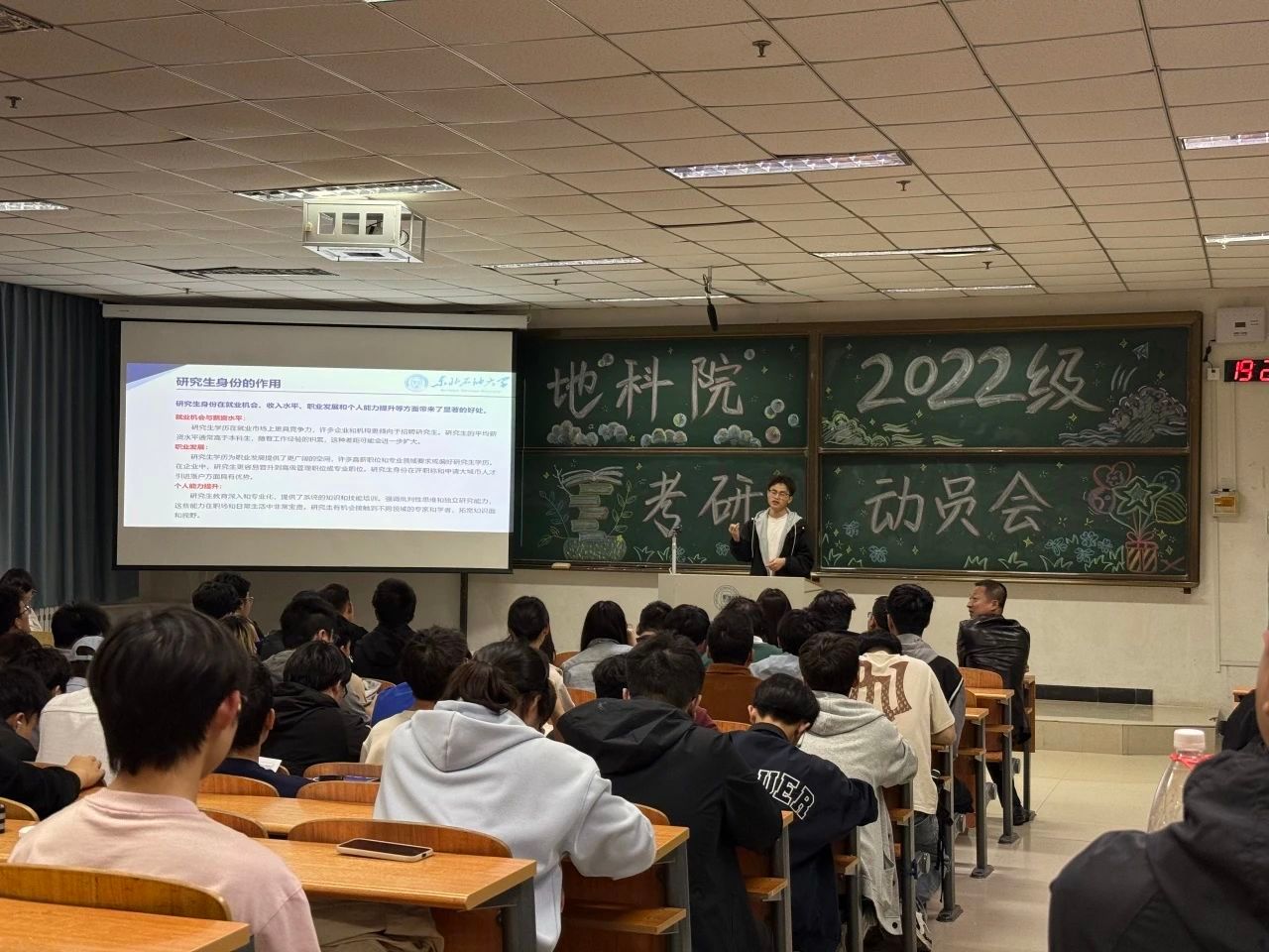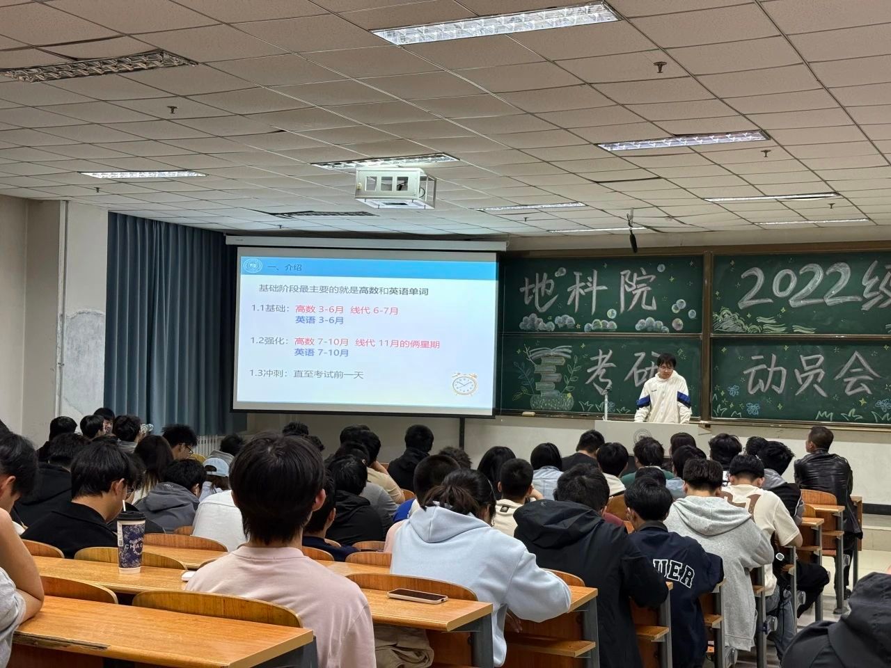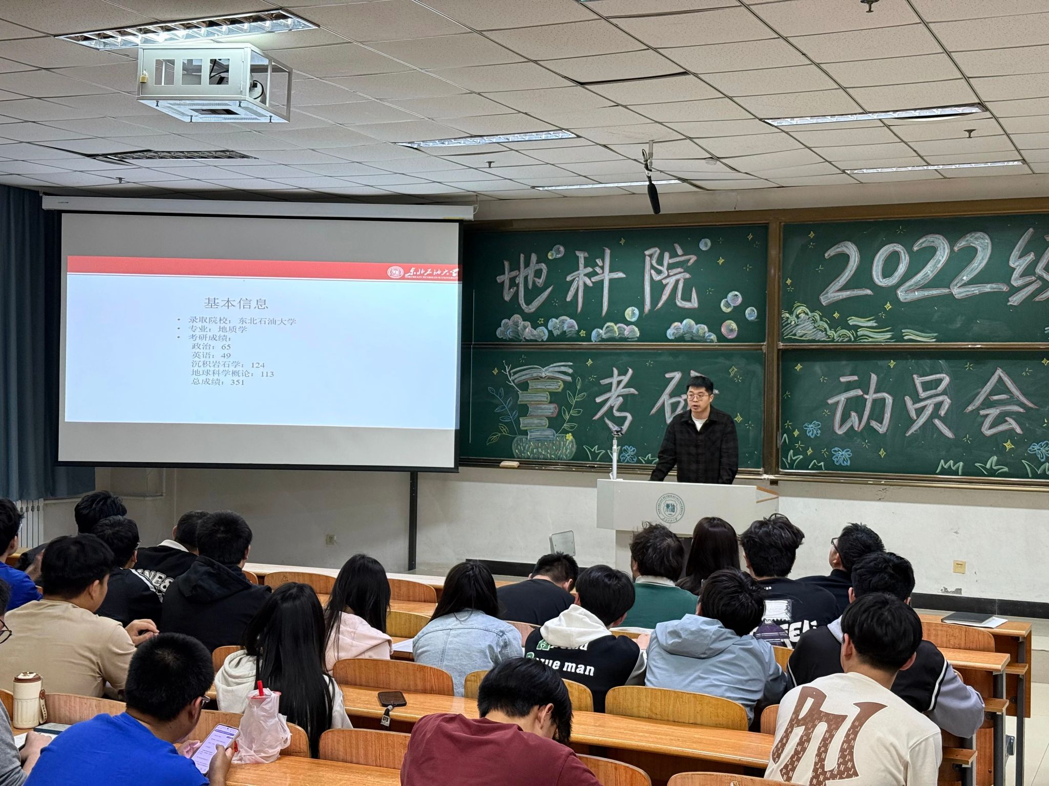 为激发学生考研热情,助力学子科学规划备考,5月15日晚,太阳成城集团tyc234cc于教学主楼C102举行“拼搏今朝,收获未来”2022级考研动员会。学院党委副书记王钢、资源勘查系主任蒋飞、勘查技术系主任王宁、2022级辅导员李海悦、优秀研究生代表、2021级优秀考研学生代表以及2022级本科生参会。