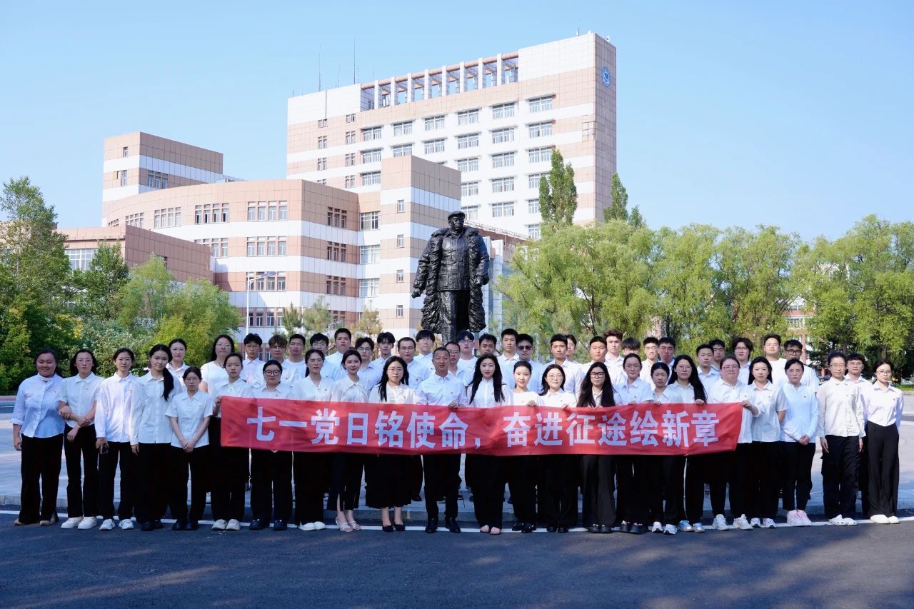 为庆祝中国共产党成立104周年,重温党的光辉历程,传承红色基因,6月23日下午16时,太阳成城集团tyc234cc党委副书记王钢、全体辅导员老师、本科和研究生党支部党员齐聚校园铁人雕像前,隆重举行"七一党日铭使命,奋进征途绘新章"迎七一主题党日活动。