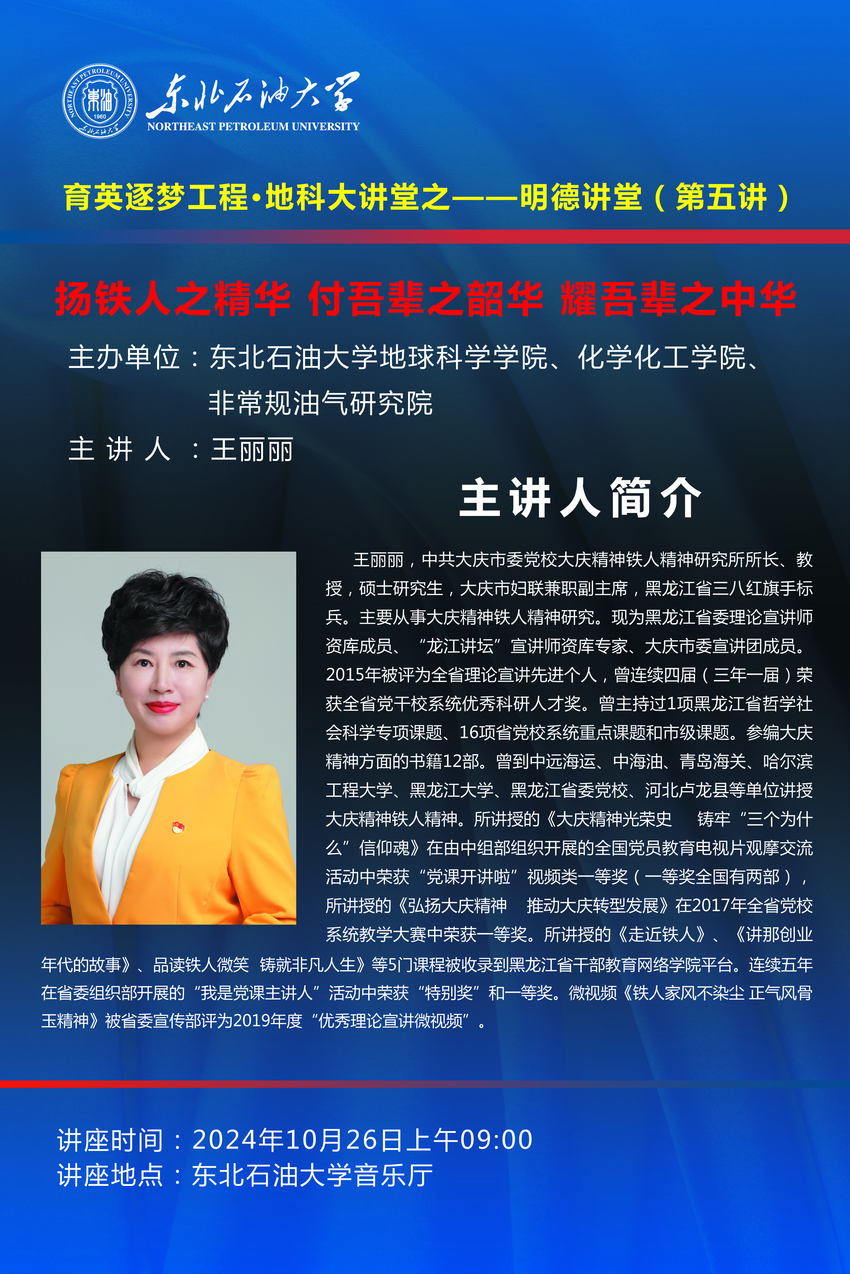 明德讲堂(第五讲)——扬铁人之精华 付吾辈之韶华 耀吾辈之中华